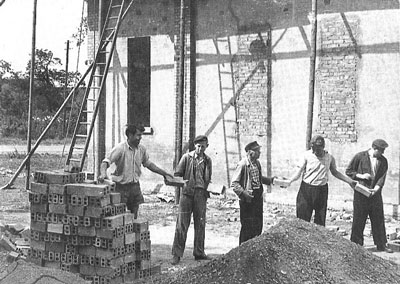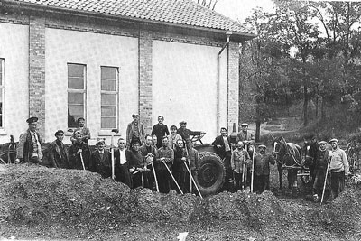 Der erste Spatenstich erfolgte am 2. Juni 1932. Die Steine lieferte die Straußfurter Ziegelei. Der Jahn Turnverein stellte unentgeltlich Arbeiter zum Aufladen von Kies, zum Kies rollen und für Planierungsarbeiten zur Verfügung.